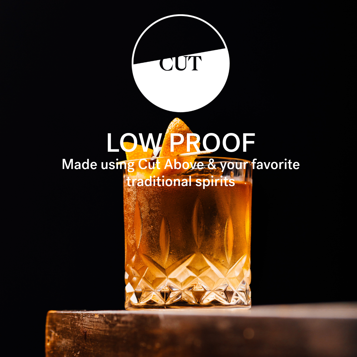 A CUT COCKTAIL reduced alcohol cocktail by pairing 1 oz. of your favorite Tequila with 1 oz. of Cut Above Zero Proof Agave Blanco Tequila (CUT)